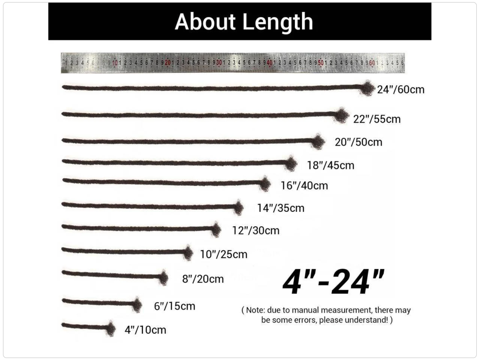 Kings and Queens , I poured my heart and soul into creating these "Black is King Locs." they are carefully constructed to last you the test of time. They measure 2 cm but are extremely light. You need 17–20 locks for a full head, depending on the look you are going for . These extensions feel and look like mature, aged, natural grown locs. The locs can be added to existing locs to add length or for repairs on broken locs. Each loc is handmade and unique. These locs can be bleached.