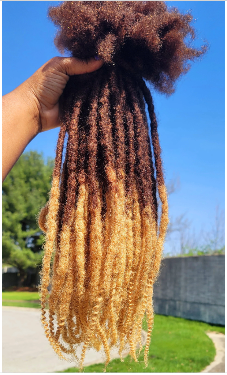 This method used in creating these locs are the interlocking method 👌 the locs very natural with a rough looking texture but smooth to a touch. These locs are also known as bubble.The locs can be added to existing locs to add length or for repairs on broken locs. Each lock is handmade and unique. Colors may slightly different.